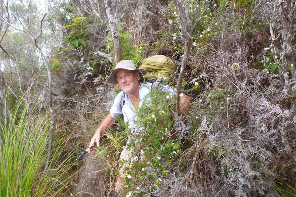 Jon emerging from a belt of thick scrub. Photo credit Andy Macqueen