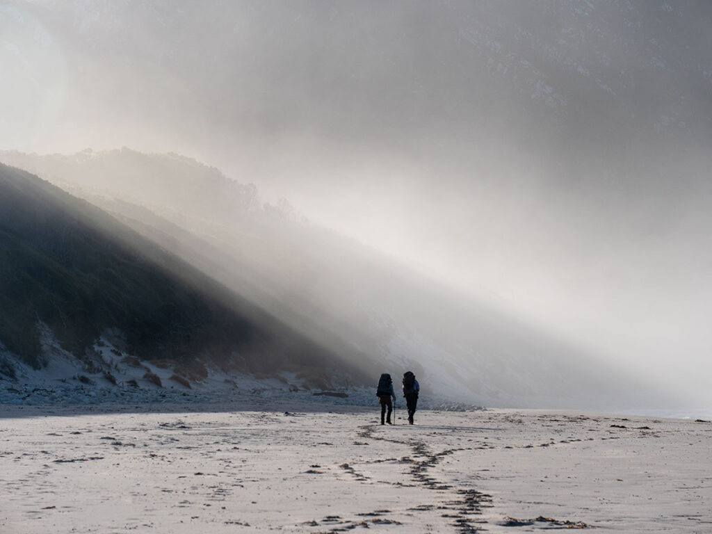 Jon and Gabby heading off on a misty south coast morning. Photo credit Geoffrey Luscombe
