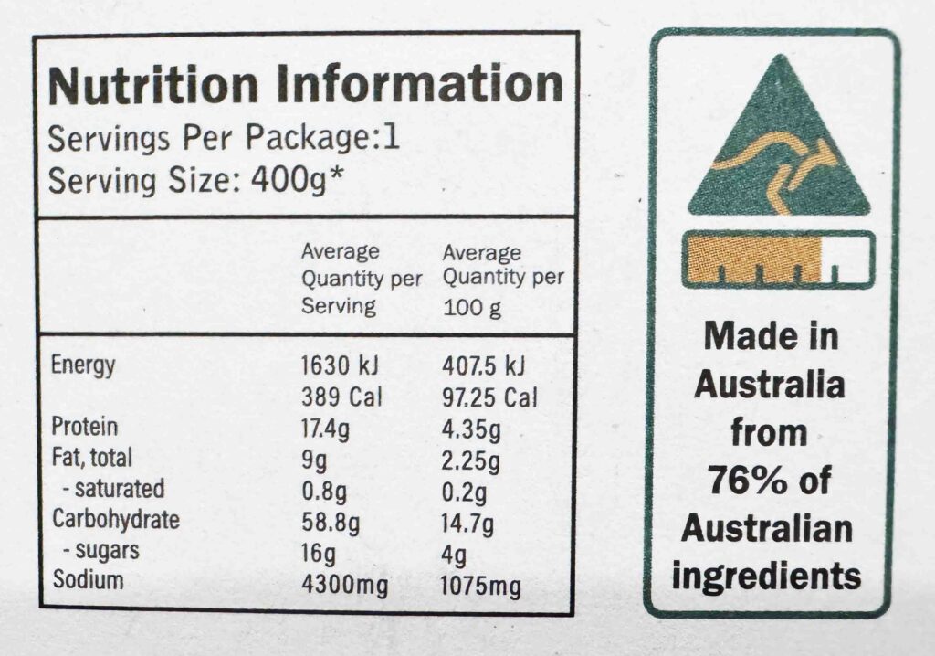 Price wise this single serve meal is AUD$18.99 RRP at the time of review. For a single serve meal this sits in the mid range of freeze dried offering and for the quality of the meal this is good value for money.