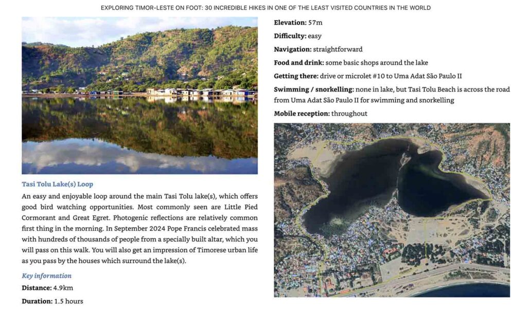 This is where Exploring Timor-Leste on Foot: 30 incredible hikes in one of the least visited countries in the world, or Exploring Timor-Leste on Foot for short comes in handy. It’s a unique hiking guidebook for Timor Leste aimed at hiking and provided general information on each of these hikes. As an information driven individual I found this book over performed in some areas were a bit light on