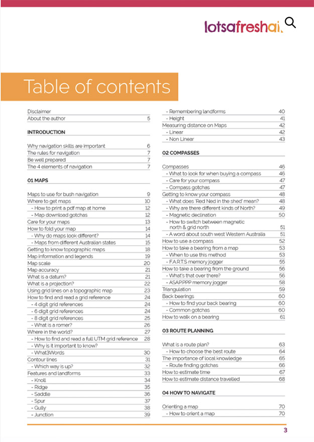 How to Navigate, is a standalone navigation resource for outdoor enthusiasts that is structured in a logical manner and presented in a way that’s easy to understand. It uses a combination of simple clear text with supporting photos and diagrams to get the subject matter across – something lacking in similar texts. This book has a spiral binder and I must admit I’m a fan of this format as it allows easy access to specific pages without having to use a weight or to bend a rigid spine. My only negative with this book, and its a minor one, is as someone with deteriorating eyesight I would appreciate a heavier text font – I guess I just need to remember my glasses!