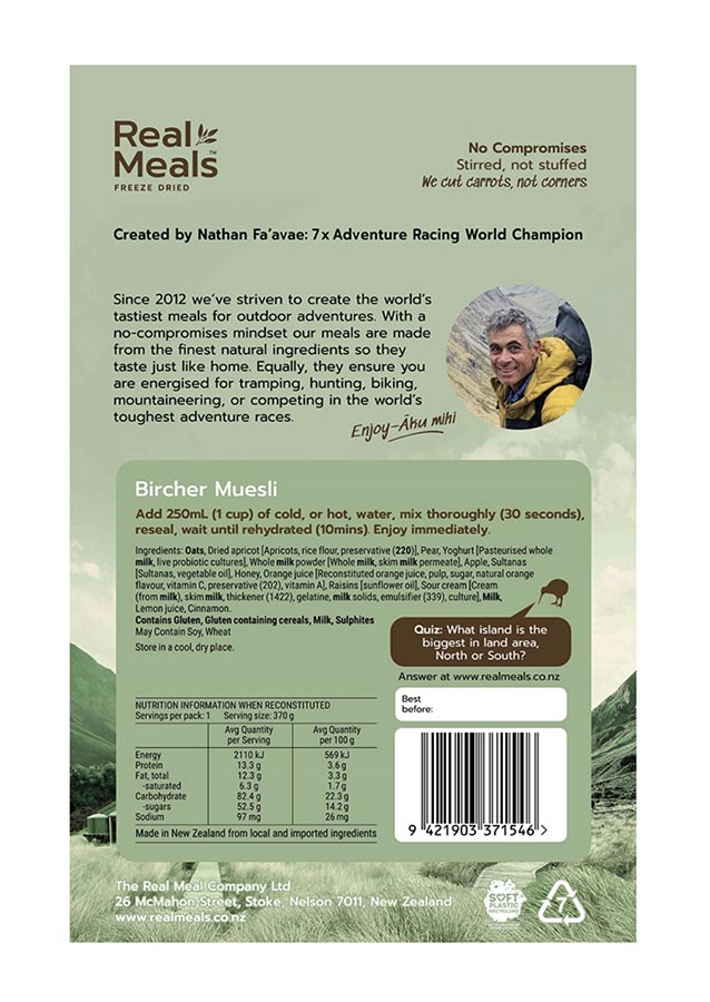 Real Meals Bircher Muesli rear of packet