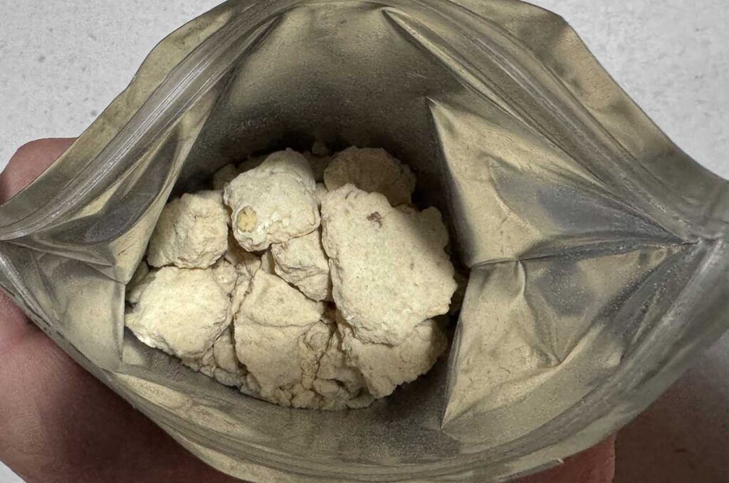 Just to provide a some context, over the past 10-12 year my relationship with breakfast on trail has changed dramatically. When I first started doing long distance hiking I would cold soak Overnight Oates which I would eat while still in my sleeping bag, but more recently I will pack up my tent and then eat dried fruit and nuts, and a bar of some sort, on the move about 30 minutes after I start. If however you are a breakfast eater then the Real Meals Bircher Muesli has a lot going for it. Firstly you can choose to rehydrate this Muesli with either hot water or cold water. The recommendations for both are the same which its to add 250mm of water, stir for 30 seconds, and then leave to rehydrate for around 10 minutes, stiring about half way through. We opted for hot water and found that the 250ml of water to be just a bit much as I think of Bircher Muesli being slightly on the solid side so I would suggest adding around 220ml of water and add more if need be. If you do choose to use cold water to rehydrate I’d suggest leaving it for around 15 minutes as I’ve always found that cold soaking freeze dried food always takes longer.