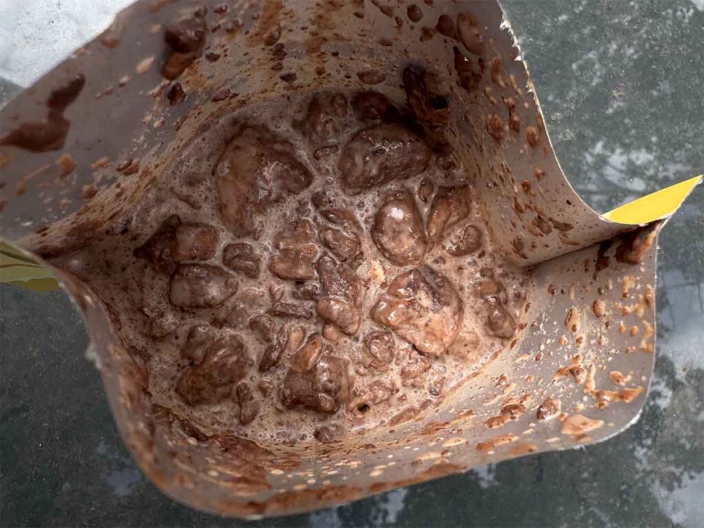 Now for the negatives. The packet that I had was nearing its use by date (my fault or not getting to it sooner) and I found that there were some lumpy bits still remaining after stirring it to death both at rehydration and prior to drinking. The end result was still a creamy chocolate shake but I had to finish this off by eating the chunky bits with a spoon. I would expect a packet that wasn’t so close to the use by date wouldn’t have this issue.