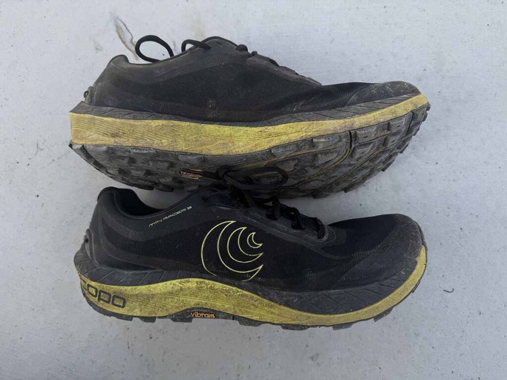 Two pairs of shoes in two bags. I wear size 15 US trail runners and if you look closely, the bag on the right which has my bulkier pair, is a bit stretched