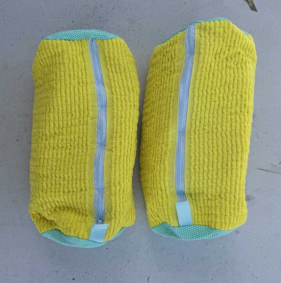 Shoe Laundry Bags showing the internal structure of the bag with the cleaning tassles
