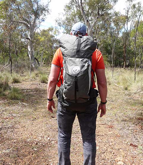 Tim wearing his Whippa X Scotty’s Gone Walkabout Colo 55 Ultralight Hiking Pack rear view