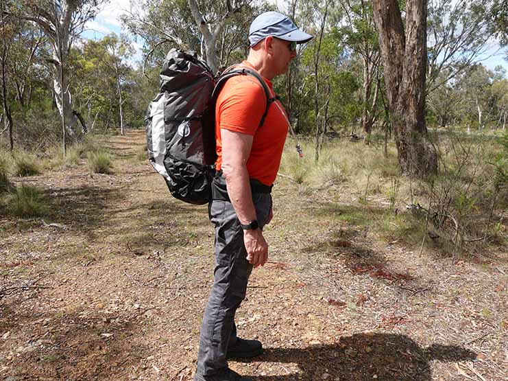 Tim wearing his Whippa X Scotty’s Gone Walkabout Colo 55 Ultralight Hiking Pack showing load lifters