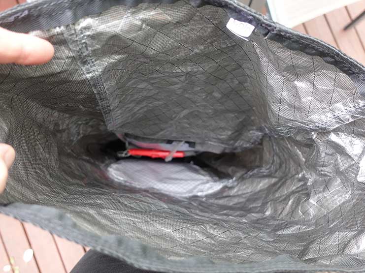 This pack is a traditional ultralight pack coming with a roll top closure. What this means is that if you are carrying a small load you can roll it down tight and small and, with the robust water restraint material you almost have a waterproof pack. In talking with Whippa they do recommend using a pack liner if you are carrying sensitive electronics but otherwise you shouldn’t need a pack cover. This brings us to the only hole in the pack which is the one that feeds a water bladder hose to the left or the right of the pack. As with most packs, this one has an internal sleeve that will cope with a water bladder up to three litres in capacity.