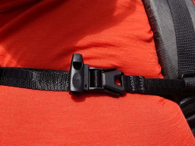 Whippa X Scotty’s Gone Walkabout Colo 55 Ultralight Hiking Pack sternum clip and whistle