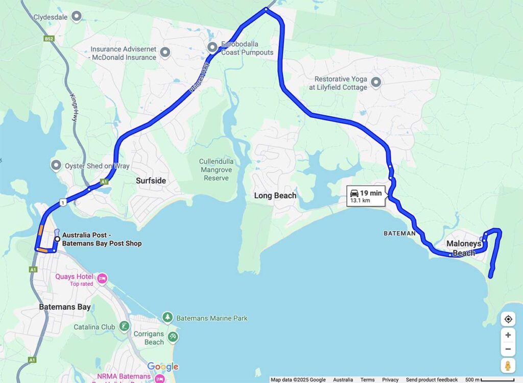 Close up of map to trailhead which is around 20 minutes from the Batemans Bay GPO