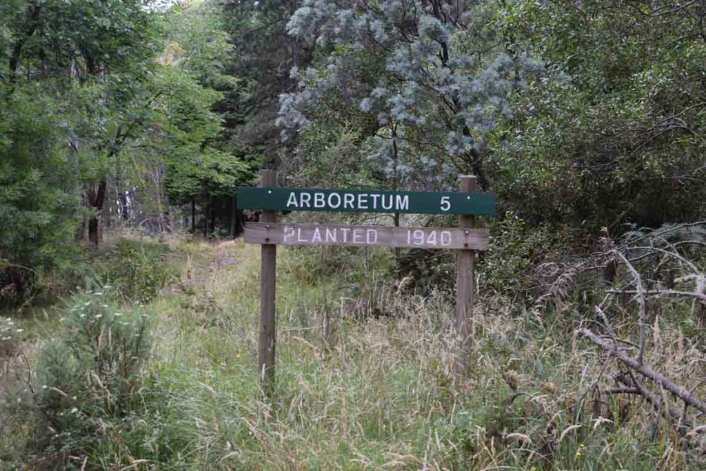 Once you reach Bendora Arboretum itself you are presented with the old Bendora Hut. This hut was used by the management staff as well as researchers but has now been relegated to a day use and emergency overnight hut. There are good interpretive signs that explain the history of the area so have a look at these first before having a look at the hut. Once you come out of the hut head back to the interpretive signage and head down a short set of stairs before turning right onto a short road that takes you to the arboretum itself.