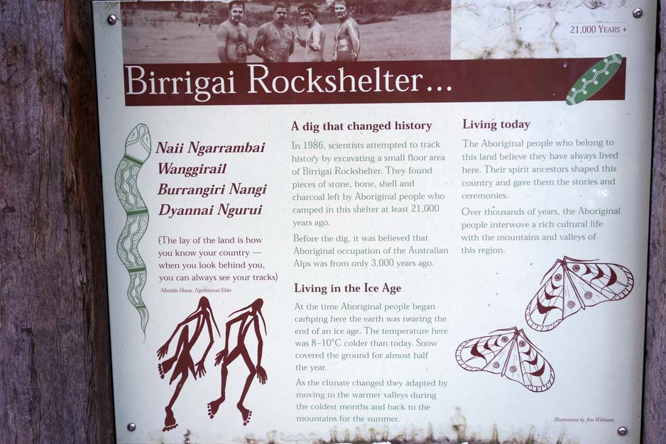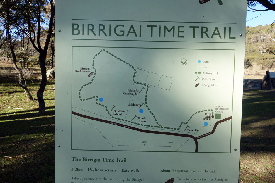 This is one of the heritage trails in the Tidbinbilla Nature Reserve and in this case, the Birrigai Time Trail focuses on the Aboriginal inhabitation. The shelter which is your destination, was originally thought to have been occupied about 3,000 years ago but after additional study, was found to have been inhabited as far back as 21,000 years. On the day I visited, the temperature was about 8-10° Celsius colder than nearby areas which would have meant regular snow in this area in mid-winter so shelters would have been crucial for survival.