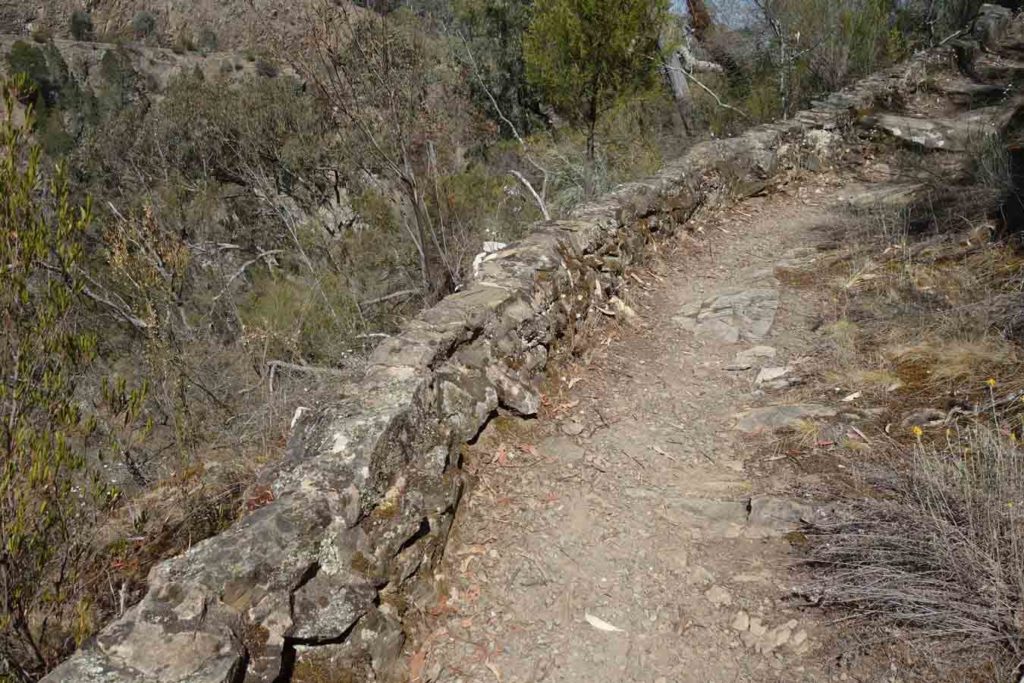The trail itself looks to be one of the older recreational trails in Canberra based on the trail infrastructure and it could use some love and attention, as well as some additional signage. Having said that it has a uniqueness about it that makes it feel like it belongs in another city. The trail tread is rough and can’t in any way be described as groomed and as such this is something to keep an eye on – some sections of the trail are quite narrow. While there are no cliffs there are some steep drop offs so keep an eye on your footing as well as any young children you have with you. The trail has plenty of ups and down and when combined with the rough trail tread makes for a demanding walk that can be done in 2-3 hours if fit. Alternatively take your time and make a day of it.