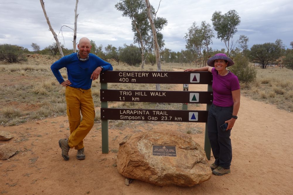 Tim and Gill on the last day at the Section 1 trail head in Alice Springs